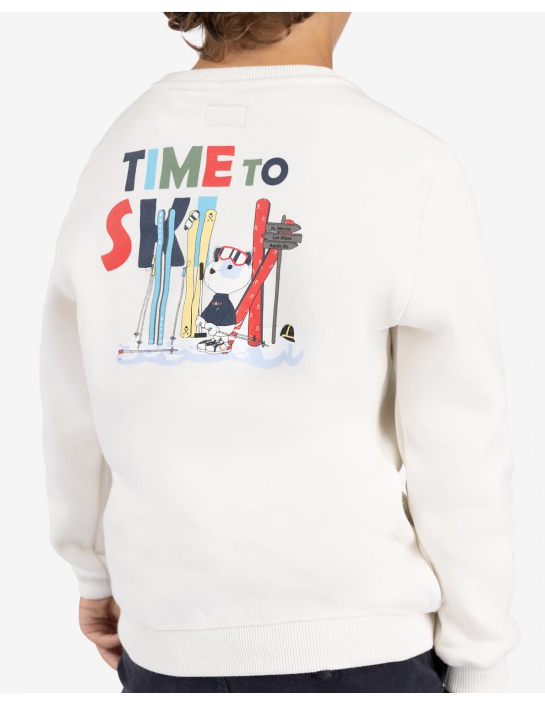 Sudadera de inspiración après-ski, con estampado en la espalda y acabado suave. Ideal para aportar un toque divertido a tus looks de invierno. Calidez con estilo. 100% algodón.