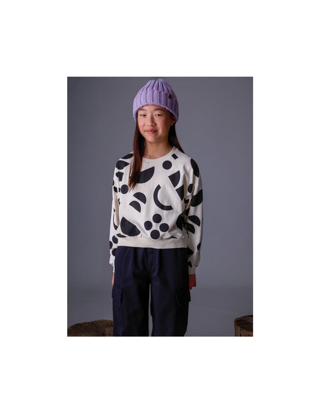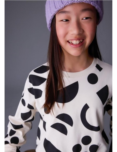 Sudadera de manga larga para chica. Cuello redondo. Silueta de líneas relajadas con hombros caídos.