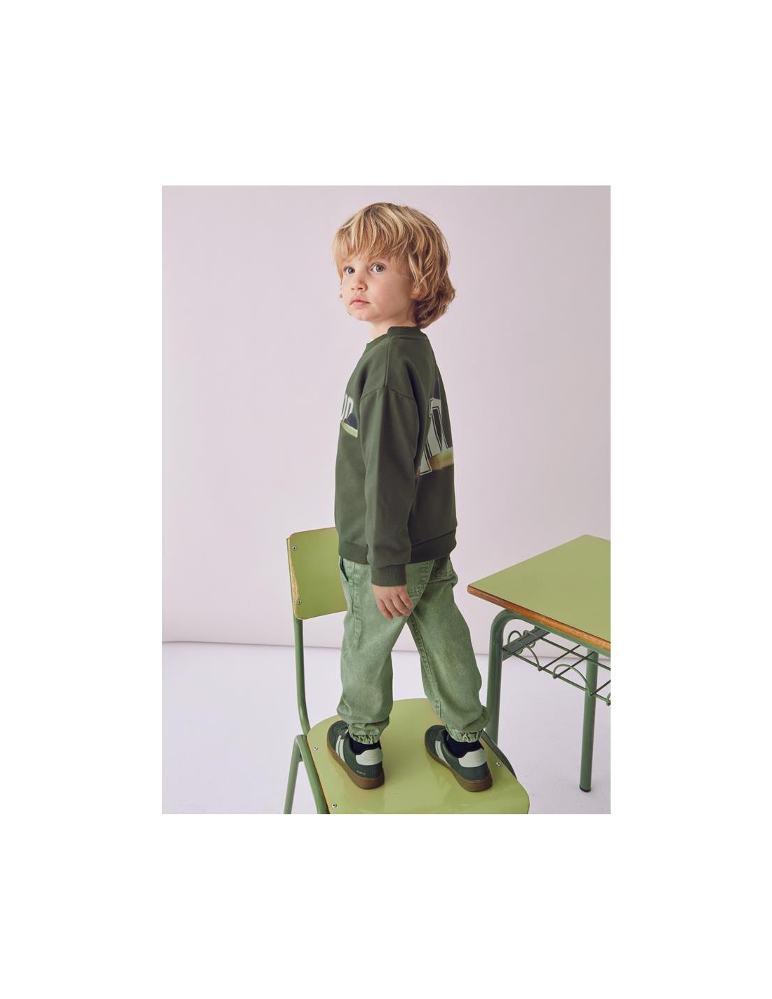 Sudadera de manga larga para niño. Cuello redondo. Bajo, puños y cuello de punto elástico para un mejor ajuste. Elementos de adorno: dibujo en la parte frontal y trasera de la prenda.