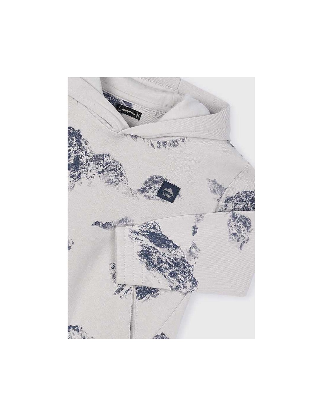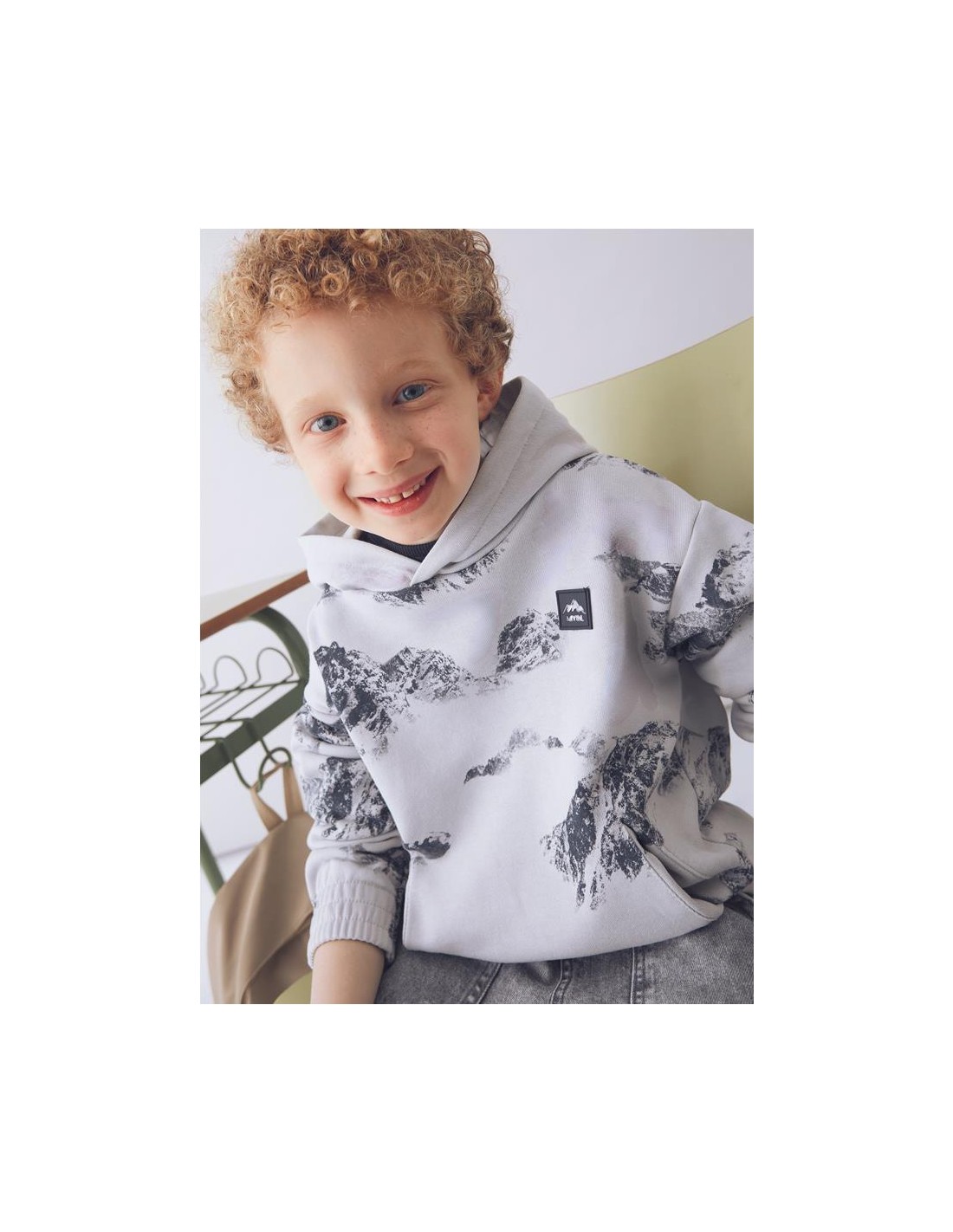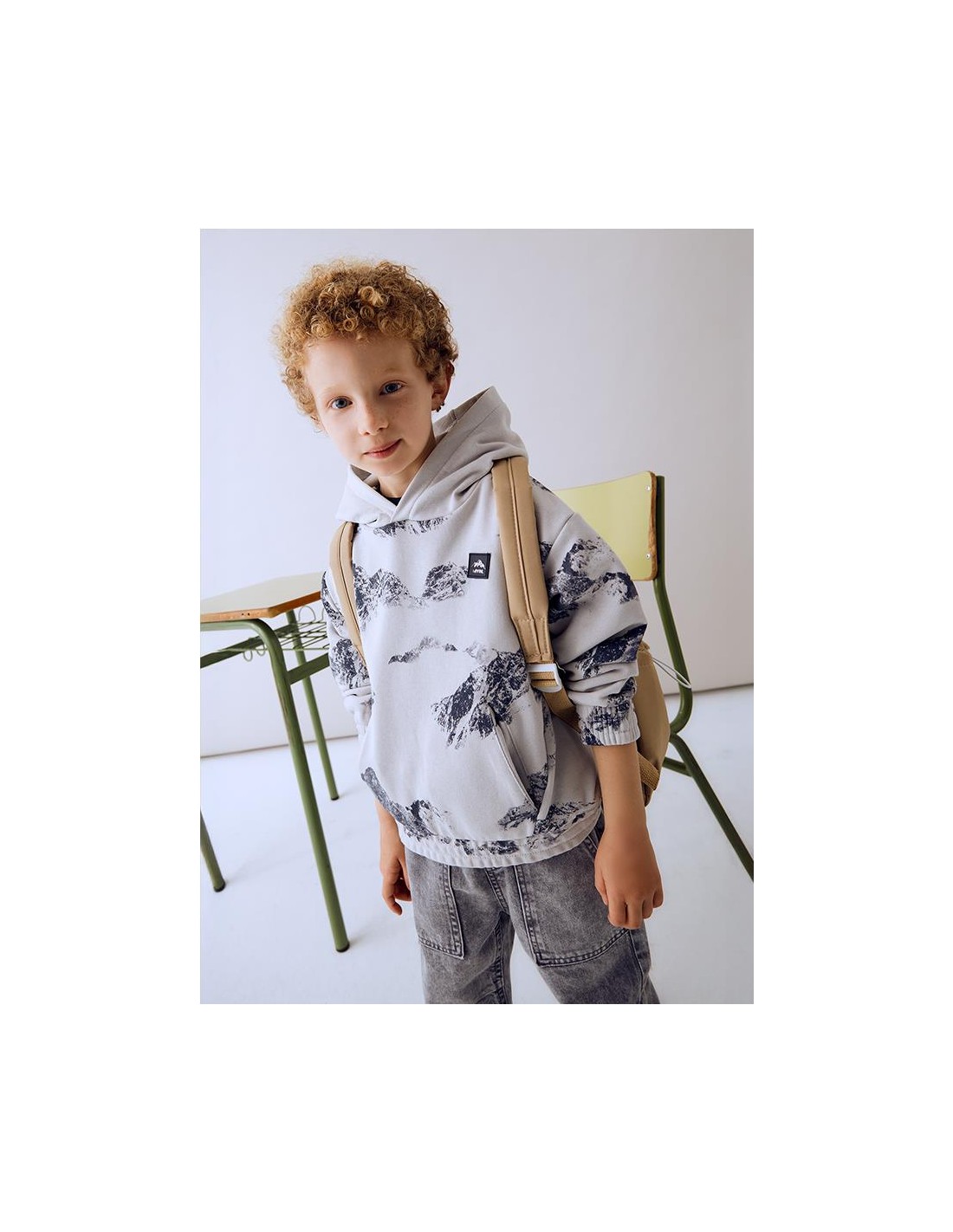 Sudadera de manga larga para niño con puños elásticos. Cuello con capucha. Bajo elástico para un mejor ajuste. Bolsillos funcionales en la parte delantera. Diseño estampado.