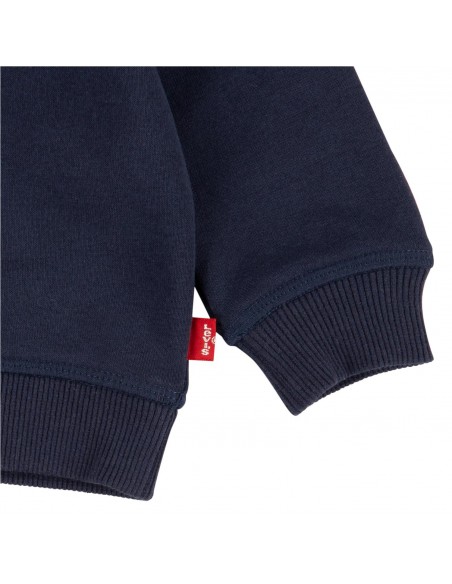 Sudadera básica Levis cuello redondo. Apertura lateral en el hombro con broces para facilitar la puesta, puños en las mangas y el bajo de algodón elástico.